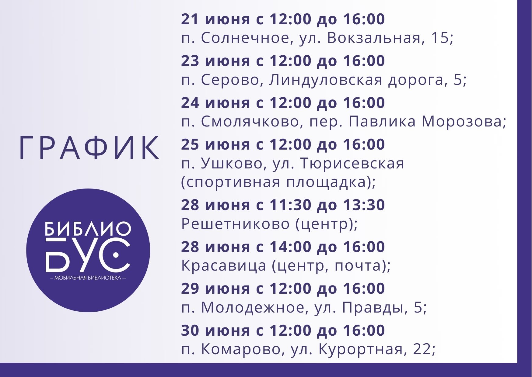Где можно посетить мобильную библиотеку в ближайшие дни?
