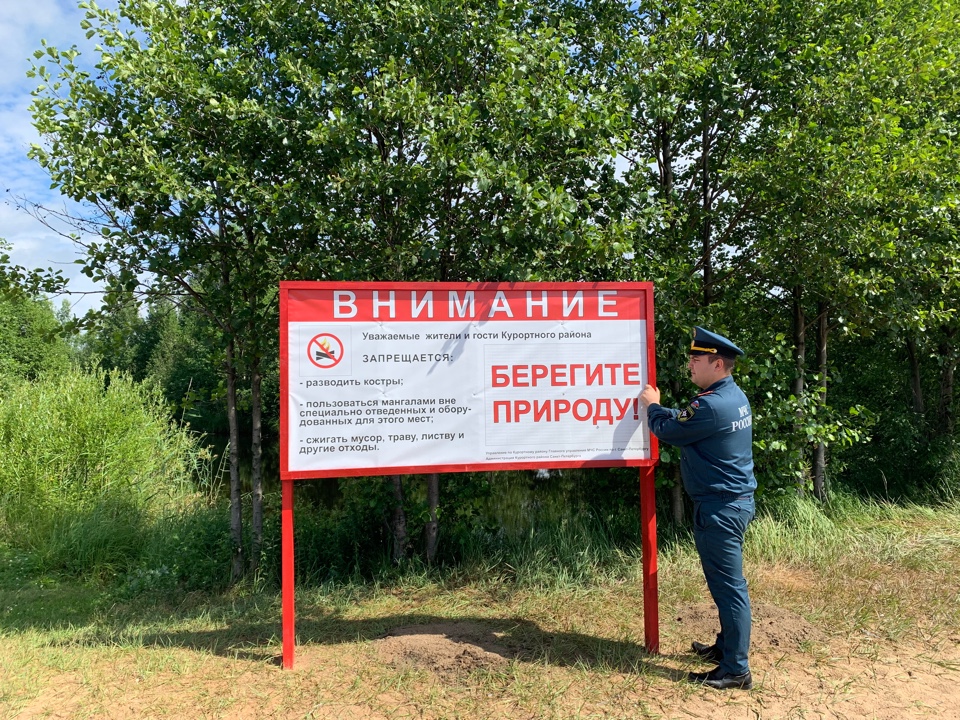 Предупреждающие аншлаги «Берегите природу!» были установлены сотрудниками управления по Курортному району Главного управления МЧС России по г. Санкт-Петербургу совместно с представителями Курортного лесопарка и при поддержке комитета по благоустройству «Курортный берег». Информационные таблички были размещены на территории пляжей Курортного района: пляж «Ласковый» в п. Солнечное, пляжи в г. Сестрорецк «Северный», «Офицерский», «Сестрорецкий», «Дубковский» и ещё на 8 точках.