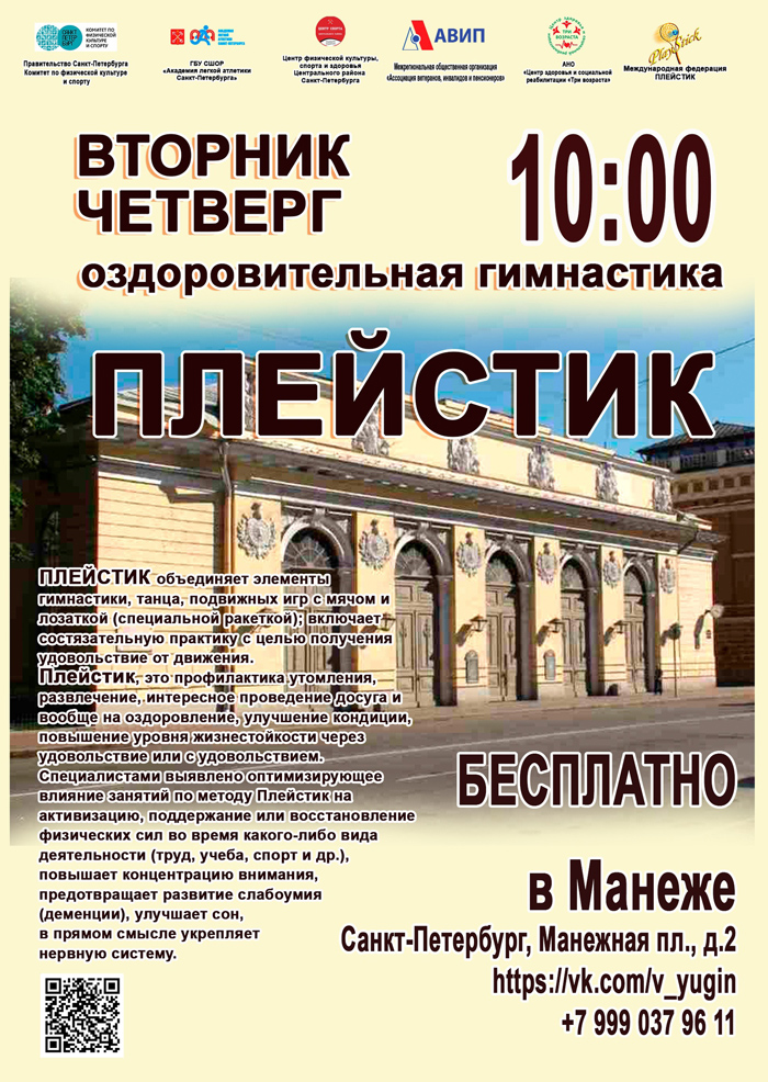Санкт-Петербургским государственным бюджетным учреждением “Центр физической культуры, спорта и здоровья Центрального района Санкт-Петербурга” в сентябре открыта социальная (бесплатная) оздоровительная программа по методу Плейстик.