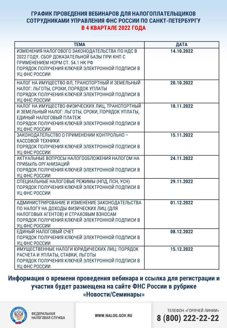 График проведения вебинаров для налогоплательщиков