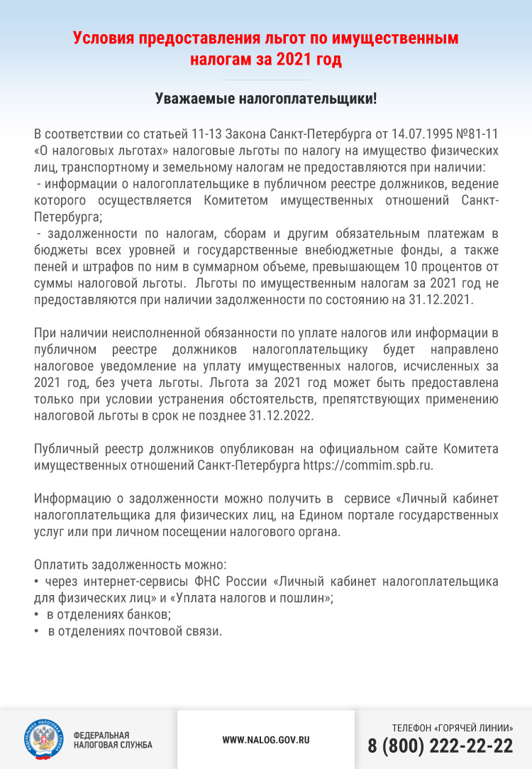 Информация по имущественным налогам