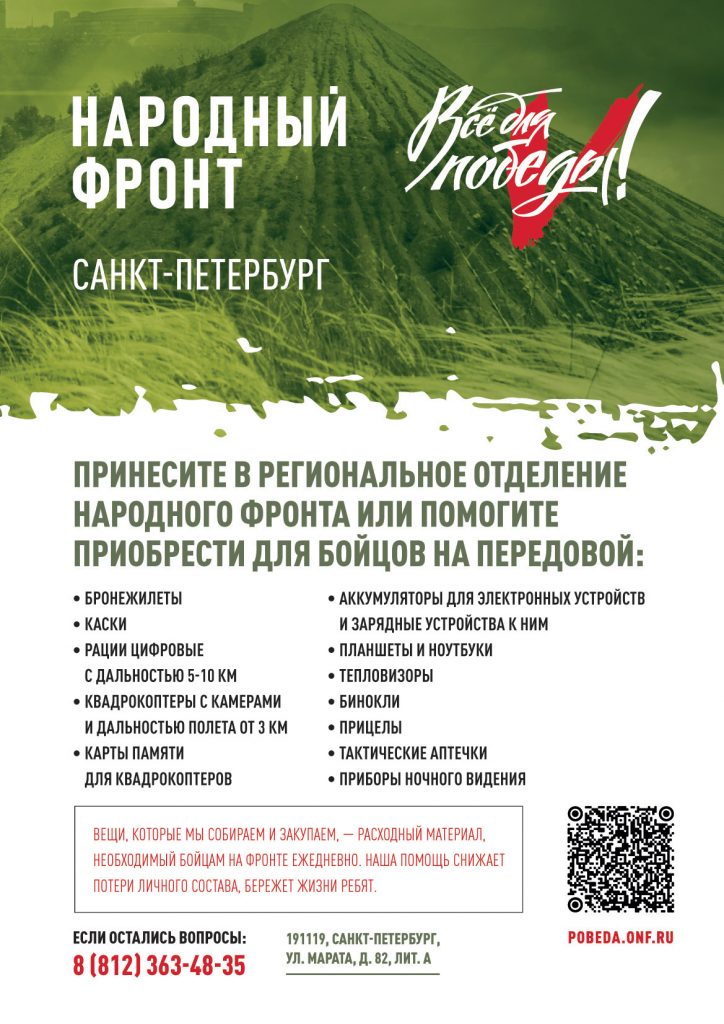 ОНФ организован региональный сбор в Санкт-Петербурге для оказания помощи военнослужащим в рамках СВО 7 Дек 2022