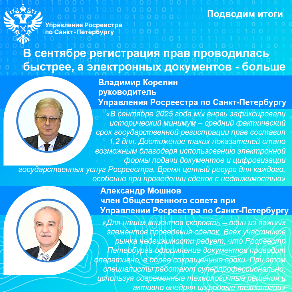 Управление Росреестра по Санкт-Петербургу подвело итоги деятельности в сентябре 2025 года 17 Окт 2025