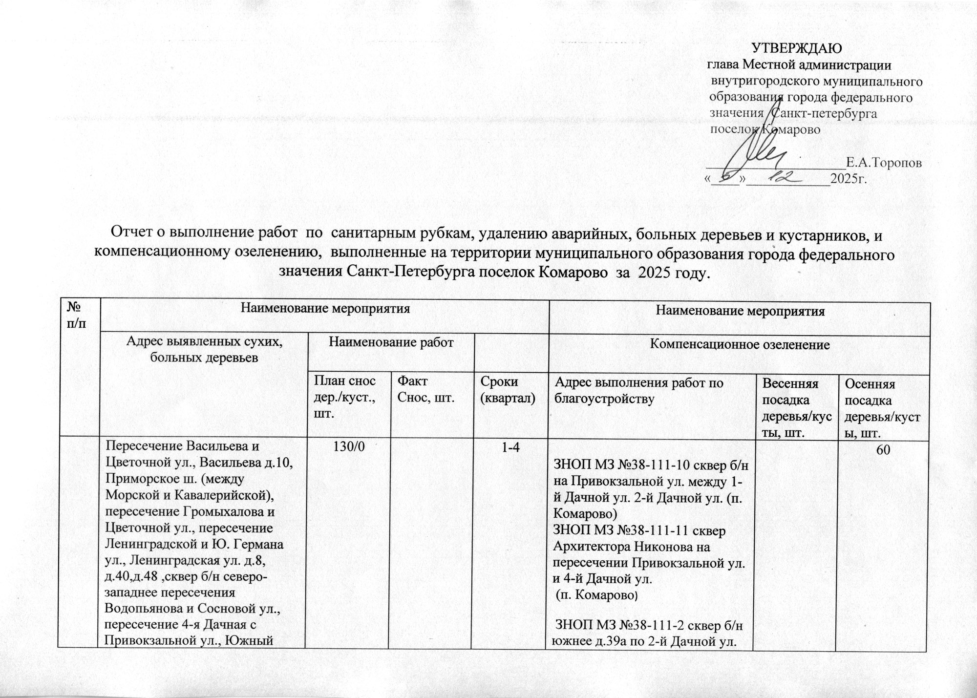 Отчет по компенсационному озеленению за 2025 г.