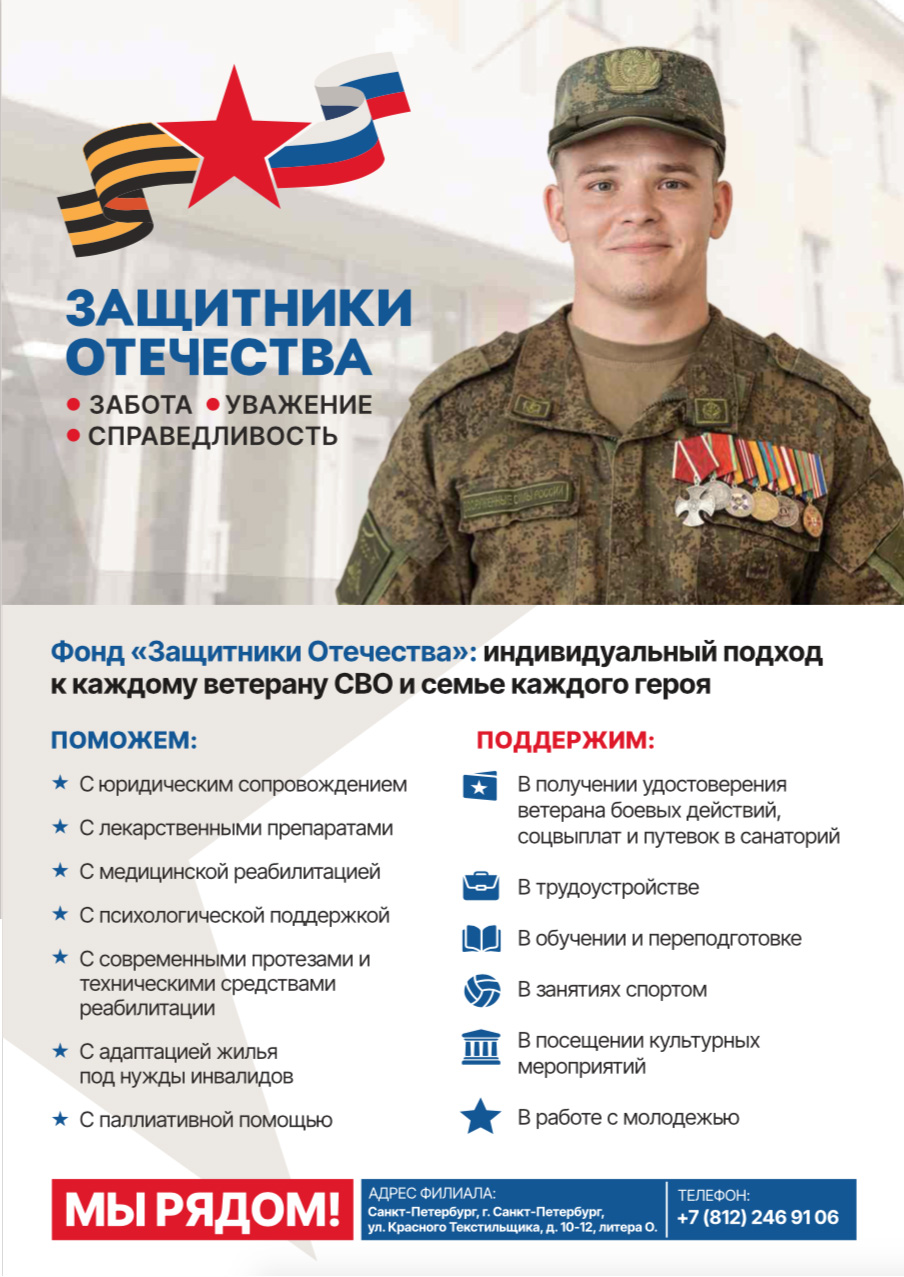 Государственный фонд «Защитники Отечества» создан по Указу Президента России Владимира Путина. Основной его целью является персональное сопровождение ветеранов специальной военной операции (демобилизованных участников СВО) и членов семей погибших и без вести пропавших участников СВО.
