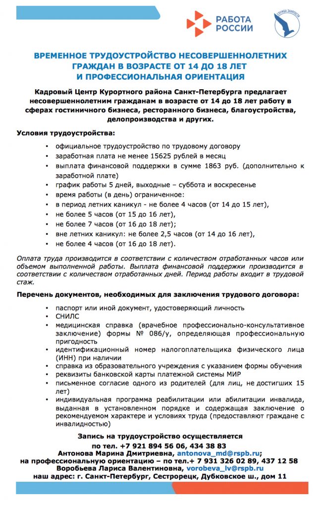 Временное трудоустройство несовершеннолетних
