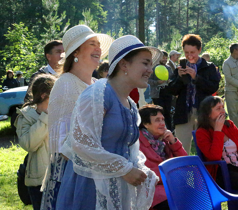 В 17.00 прозвучали торжественные фанфары. На сцене появился ведущий – заслуженный артист России Сергей Соловьев и предоставил слово главе МО поселок Комарово Журавской Анастасии Сергеевне. На этом официальная часть закончилась, и начались конкурсы, розыгрыши, выступления артистов. На конкурс «Дама с собачкой» сначала записалось мало дам, хотя с домашними любимцами пришли многие, но когда подошло время подводить итоги, оказалось гораздо больше желающих. Симпатии зрителей были, естественно, отданы всеобщему любимцу, библиотечному псу «Мише» с его хозяйкой Еленой.