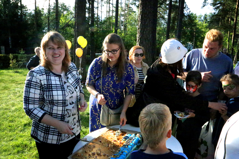Закончилось все чаепитием с огромным тортом, который был сделан по заказу МО поселок Комарово, и представлял собой афишу с названием праздника. Как удалось главе муниципального образования А.С. Журавской угостить им всех желающих, остается загадкой, но мне тоже одна буковка из названия досталась.